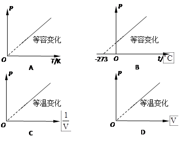 | A.体积不变时,温度升高,压强增大 | B.温度不变时,压强不变,体积增大 |