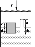 如图所示,在柱形容器中装有部分水,容器上方有一可自由移动的活塞。容器水面浮有一个木块和一个一端封闭、开口向下的玻璃管,玻璃管中有部分空气,系统稳定时,玻璃管内空气柱在管外水面上方的长度为a,空气柱在管外水面下方的长度为b,水面上方木块的高度为c,水面下方木块的高度为d。现在活塞上方施加竖直向下、且缓缓增大的力F,使活塞下降一小段距离(未碰及玻璃管和木块),下列说法中正确的是( )