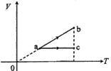 带有活塞的汽缸内封闭一定量的理想气体。气体开始处于状态a,然后经过过程ab到达状态b或经过过程ac到状态c,b、c状态温度相同,如V-T图所示。设气体在状态b和状态c的压强分别为Pb、和PC ,在过程ab和ac中吸收的热量分别为Qab和Qac,则( )![]()
