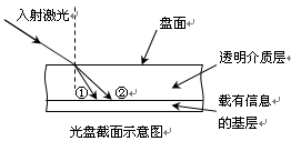 | B.在光盘的透明介质层中,光束①比光束②传播速度更快 |