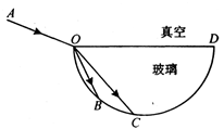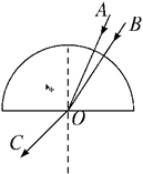 如图,一条红色光线和另一条紫色光线,以不同的角度同时沿不同的半径方向射入同一块半圆形玻璃砖,其透射光线都是由圆心O点沿OC方向射出.则可知
