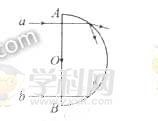 半圆形玻璃砖横截面如图,AB为直径,O点为圆心。在该截面内有a、b两束单色可见光从空气垂直于AB射入玻璃砖,两入射点到O的距离相等。两束光在半圆边界上反射和折射的情况如图所示,则a、b两束光![]()