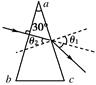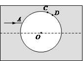 在透明均匀介质内有一球状空气泡, 一束包含a、b两种单色光的细光束从介质射入气泡, A为入射点, 之后a、b色光分别从C点、D点射向介质,如图所示。已知A点的入射角为30°,a色光的偏向角为45° (C点出射光线与入射光线的夹角), CD弧所对的圆心角为3°, 则下列结论正确的是![]()
