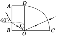 如图所示为一块用某种透明材料制成的柱形棱镜的水平截面图,CD为圆周,圆心为O,光线从AB面入射,入射角为60°,它射入棱镜后射在BC面上的O点并恰好不从BC面射出.则该棱镜的折射率n为( )![]()