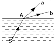 如图所示,水下光源S向水面A点发射一束光线,折射光线分成a,b两束,则( )![]()