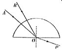 如图所示,两束单色光A、B分别沿半径方向由空气射入半圆形玻璃砖,出射光合成一束复光P,下列说法正确的是 ( )![]()