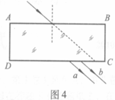 如图4所示,一束复色光斜射到置于空气中的厚平板玻璃(上、下表面平行)的上表面,穿过玻璃后从下表面射出,变为