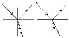 两束不同颜色的平行单色光a、b,由真空射向同一介质,如图所示。折射角