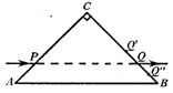 一个等腰直角三棱镜的截面如图所示,一细束蓝光从AC面的P点沿平行底面AB方向射入棱镜后,经AB 面反射,再从BC面的Q点射出,且有PQ//AB (图中未画光在棱镜内的光路)。如果将一细束红光仍从P 点沿平行底面AB方向射入三棱镜,则从BC面射出的光线( )![]()