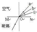 一束复色光从玻璃界面射向空气时分成a、b、c三束,如图所示,三束光相比较,可以确定![]()