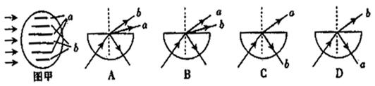 如图所示,OO'是半圆柱形玻璃体的对称面和纸面的交线,A、B是关于OO'轴等距且平行的两束不同单色细光束,从玻璃射出后相交于OO'下方的P点,由此可以得出的结论![]()