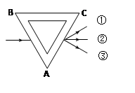 如图所示为一内侧面与外侧面平行、中间部分为空气的三棱镜。将此三棱镜放在空气中,让一束单色光沿平行于底边