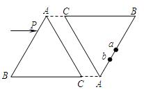 如图所示,两块相同的玻璃等腰三棱镜ABC置于空气中,两者的AC面相互平行放置,由红光和蓝光组成的细光束平行于BC面从P点射入,通过两棱镜后,变为从a、b两点射出的单色光,对于这两束单色
