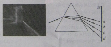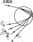 雨后太阳光入射到水滴中发生色散而形成彩虹。设水滴是球形的,图中的圆代表水滴过球心的截面,入射光线在过此截面的平面内,a、b、c、d代表四条不同颜色的出射光线,则它们可能依次是 ![]()