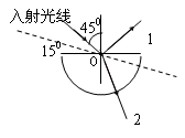 点(半圆的圆心)产生反射光束1和折射光束2,已知玻璃折射率为