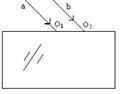 如图所示,两束平行细单色光a、b,斜射到截面是矩形的玻璃砖的一个侧面,入射点分别为O1、O2,都从玻璃砖的另一平行侧面上的某点P射出,则下列说法中正确的是![]()