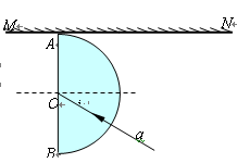 ,直径AB与屏幕垂直并接触于A点.激光a以入射角i=30°射向半圆玻璃 砖的圆心O,结果在水平屏幕MN上出现两个光斑.则两个光斑之间的距离.![]()
