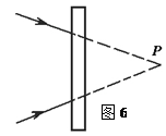 如图所示,在两束光的交点P前,放一块长方形的玻璃砖则交点位置:![]()