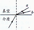 只含有a、b两种单色光的复色光由某种介质射向真空,光路如图所示,则下列说法正确的是![]()