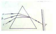 如图所示,有a、b、c三细束频率不同的色光,经三棱镜折射后成为一细束复色光射到光屏上同一点P,其中b光能使某金属Q产生光电效应,则下列说法不正确的是 ![]()