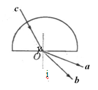 如图所示,c为一束含有红光、蓝光的复色光,沿半径方向射入半圆形玻璃砖,由圆心O点射出,分为a、b两束光,下列说法正确的是 ( )![]()