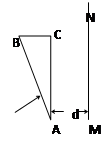 如图,有一截面是直角三角形的棱镜ABC,∠A=30º.它对红光的折射率为n1.对紫光的折射率为n2.在距AC边d处有一与AC平行的光屏。现有由以上两种色光组成的很细的光束垂直AB边射入棱镜.v1、v2分别为红光、紫光在棱镜中的传播速度,则![]()