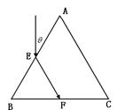 如图所示,一玻璃棱镜的横截面是等腰△abc,其中ac面是镀银的。现有一光线垂直于ab面入射,在棱镜内经过两次反射后垂直于bc面射出。则 ( )![]()