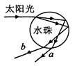 彩虹的产生原因是光的色散,如图所示为太阳光射到空气中小水珠时的部分光路图,其中a、b为两种单色光。以下说法正确的是:![]()