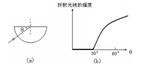 一束细光束由真空沿着径向射入一块半圆柱形透明体,如图(a)所示,对其射出后的折射光线的强度进行记录,发现折射