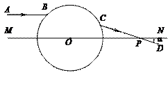 (3) 如图所示,一束激光从O点由空气射入厚度均匀的介质,经下表面反射后,从上面的A点射出。已知入射角为i,A与O相距l介质的折射率为n,试求介质的厚度d。