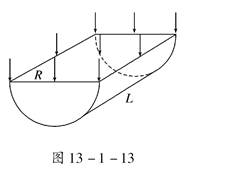 如图所示,一透明半圆柱体折射率为n=2,半径为R,长为L.一平行光束从半圆柱体的矩形表面垂直射入,从部分柱面有光线射出.求该部分柱面的面积S.