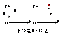 如图所示,参考系B相对于参考系A以速度v沿x轴正向运动,固定在参考系A的点光源S以速度c射出一束单色光,则在参考系B中接受到的光的情况是 .![]()