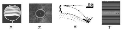 | D.丁图是衍射图像,其最明显的特征是条纹间距不等 |