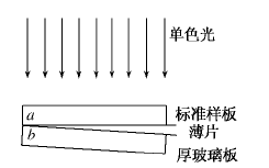 如图所示是用干涉法检查某块厚玻璃的上表面是否平的装置.a为标准样板,b为待测厚玻璃板,所用单色光是用普通光源加滤光片产生的,检查中所观察到的干涉条纹是由下列哪两个表面反射的光线叠加而成的( )![]()