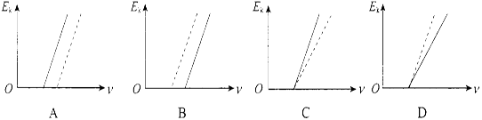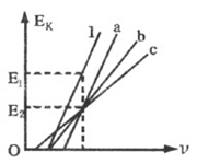 已知金属甲发生光电效应时产生光电子的最大初动能跟入射光的频率关系如直线1所示。现用某单色光照射金属甲的表面,产生光电子的最大初动能为Ek;若用同样的单色光照射金属乙表面,产生光电子的最大初动能如图所示。则金属乙发生光电效应时产生光电子的最大初动能跟入射光的频率关系图线应是( )![]()
