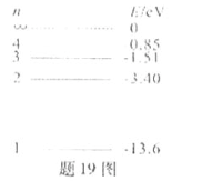用大量具有一定能量的电子轰击大量处于基态的氢原子,观测到了一定数目的光谱线。调高电子的能量再次进行观测,发现光谱线的数目比原来增加了5条。用△n表示两次观测中最高激发态的量子数n之差,E表示调高后电子的能量。根据氢原子的能级图可以判断,△n和E的可能值为![]()