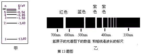 图甲所示为氢原子的能级,图乙为氢原子的光