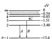 当用具有1.87 eV能量的光子照射n=3激发态的氢原子时,氢原子:( )