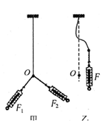 的共同作用下,将橡皮条的结点拉长到O点;图乙表示准备用一个拉力F拉橡皮条.下列说法正确的是 ( )![]()