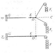 某同学利用如图所示的装置探究共点力合成的规律,图中GE是橡皮条,甲图表示用两个互成角度的拉力牵拉橡皮条,乙图表示用一个拉力牵拉橡皮条,下列说法正确的是![]()