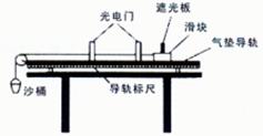 如图所示的装置由气垫导轨、两个光电门、滑块和沙桶等组成。光电门可以测出滑块分别通过两个光电门的瞬时速度,导轨标尺可以测出两个光电门间的距离,另用天平测出滑块和沙桶的质量分别为M和m。下面说法正确的是 (选填字母代号)![]()