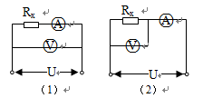 先后按图中(1)、(2)所示电路测同一未知电阻阻值Rx,已知两电路的路端电压恒定不变,若按图(1)所示电路测得电压表示数为6V,电流表示数2mA,那么按图(2)所示电路测得的结果应有( )![]()