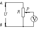 如图所示,AB间电压恒为11V,R为阻值较大的滑线变阻器,P为R的中点,用一只0~5V~15V的双量程电压表的“5V”档测PB间的电压时,电压表恰好满偏,若换用“15V”档测量,则电压表的示数为![]()