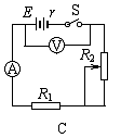 图中B为电源,R1、R2为电阻,K为电键。现用多用电表测量流过电阻R2的电流。 将多用电表的选择开关调至直流电流挡(内阻很小)以后,正确的接法是( )![]()