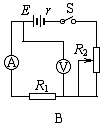 图中B为电源,R1、R2为电阻,S为电键.现用多用电表测量流过电阻R2的电流.将多用电表的选择开关调至直流电流挡(内阻很小)以后,正确的接法是( )![]()