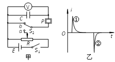 某同学设计了一个探究电容器所带电荷量与电容器两极间电压关系的实验,实验电路如图6甲所示,其中P为电流传感器,V为电阻很大的电压表。实验时,先将开关S1闭合,单刀双掷开关S2掷向a,调节滑动变阻器的滑动头到某位置使电容器C充电,当电路达到稳定后记录理想电压表的示数。再迅速将开关S2掷向b,使电容器放电。电流传感器P将电容器充、放电过程中的电流数据传送给计算机,在计算机上可显示出电流i随时间t变化的图象如图乙所示。然后改变滑动变阻器滑动头的位置,重复上述步骤,记录多组电流随时间变化的图象和电压表的示数。对于这个实验过程和由图象及数据所得出的结果,下列说法中正确的是( )![]()