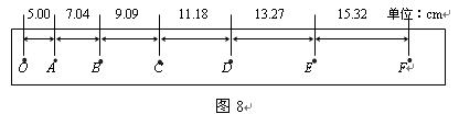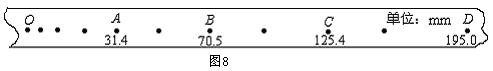 (1)若实验中所使用的重物质量为m=0.1kg,打点纸带如图所示,O是第一点,OA间还有未画出的点,打点计时间隔为0.02s,则记录B点时,重物的速度vB= ,重物的动能为EK= 。从开始下落到B点,重物的重力势能改变量是ΔEP= ,因此,可以得出的结论是: 。