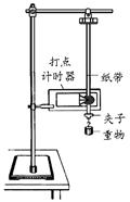 (8分)用如图所示的实验装置验证机械能守恒定律。实验所用的电源为学生电源,输出电压为6V的交流电和直流电两种。重锤从高处由静止开始下落,重锤上拖着的纸带打出一系列的点,对纸带上的点痕进行测量,即验证机械能守恒定律。![]()