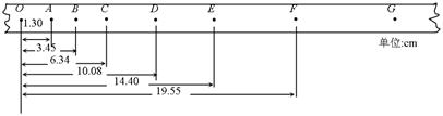 如图所示是某同学用电磁打点计时器分析匀变速直线运动时,从若干纸带中选取的一条纸带的一部分,相邻两个计数点之间还有4个点。他对各个计数点间距离的测量结果如图(单位:cm)![]()