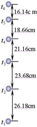 (8分)某同学利用竖直上抛小球的频闪照片验证机械能守恒定律。频闪仪每隔0.05s闪光一次,图中所标数据为实际距离,该同学通过计算得到不同时刻的速度如下表(当地重力加速度取9.8m/s2,小球质量m=0.2kg,结果保留三位有效数字):![]()